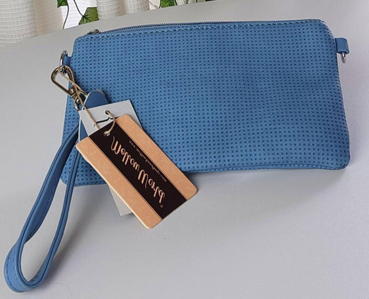 New Mellow World Wristlet Blue Rose Design with Crossbody Chain